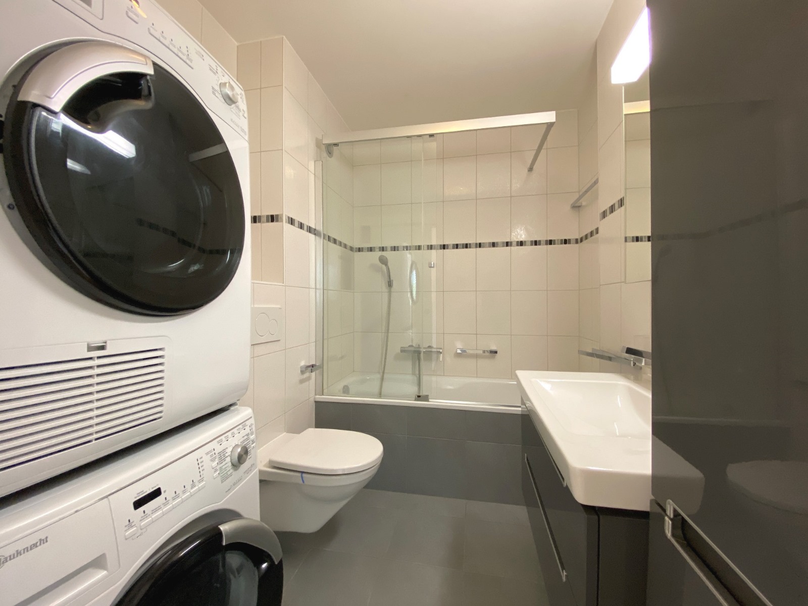 – 2 salles de bains, dont une avec baignoire et colonne de lavage